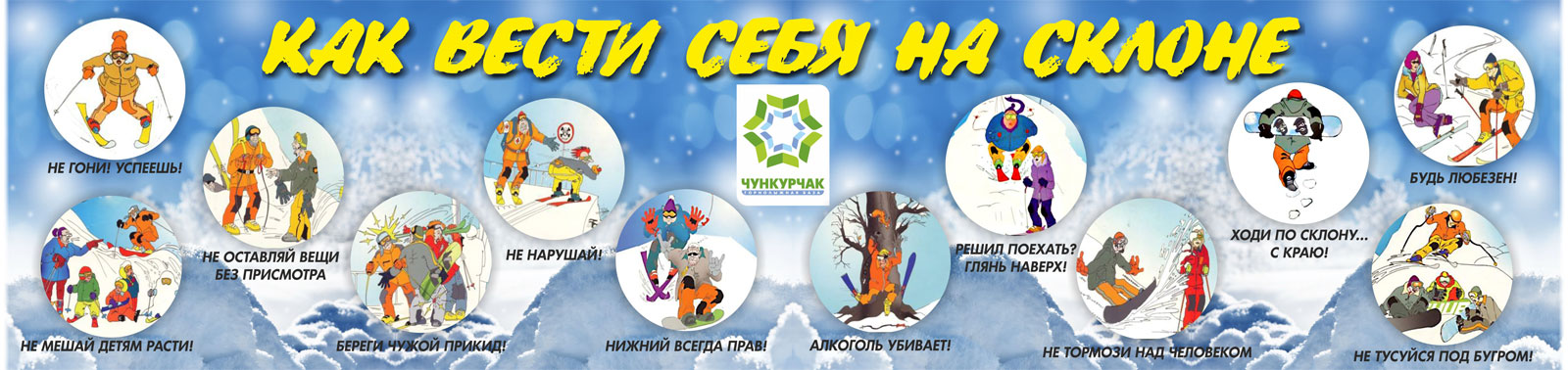 Напоминаем, что горнолыжный комплекс Чункурчак является частным предприятием и несоблюдение настоящих правил может являться основанием для отказа в предоставлении услуг без объяснения причин, а также для выдворения нарушителей за пределы комплекса. Несоблюдение настоящих правил может привести к серьезным травмам. Помните, Вы несете административную и уголовную ответственность в случае причинения вреда имуществу комплекса, а также здоровью и жизни окружающих Вас людей!